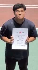 第72回東海高等学校総合体育大会陸上競技男子砲丸投げにおいて、機械科3年村田悠輔さんが14m10㎝という記録で6位に入賞、インターハイ出場権を獲得することができました。インターハイは、7月24日~29日、広島県広島市ホットスタッフフィールド広島で開催されます。今後のさらなる躍進を期待しています。