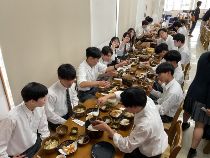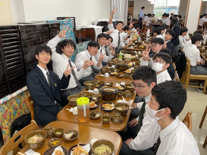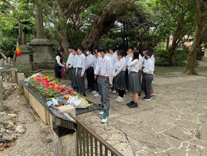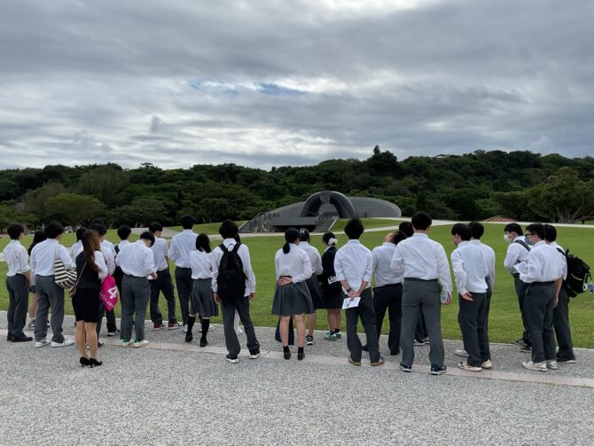 現在、ひめゆりの塔の見学を終えて、昼食を頂き、平和祈念公園へ向かっております。ひめゆりの塔では、戦争で亡くなった方々へ手を合わせ、資料館では真剣に資料を見て学習している姿がとても印象的でした。昼食はソーキそば等、沖縄特有の料理を頂きました!