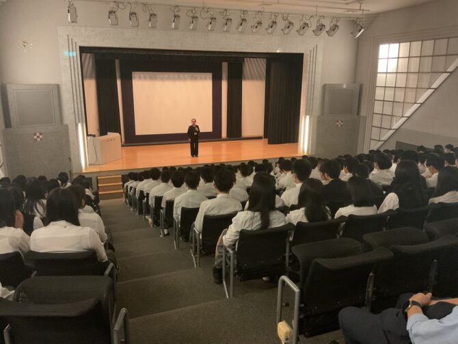 先回に続き、ELECビジネス&公務員専門学校公務員科の長谷川靖洋先生に御来校いただきました。テーマは、「公務員」の職種、メリット、必要性についてで、高等学校卒業時の進路選択について、じっくりと考える良い機会となりました。