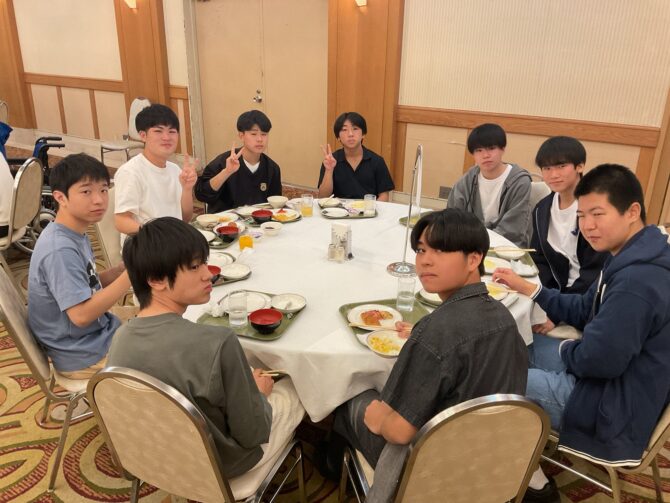 1団修学旅行2日目がスタートしました!本日の沖縄は雨となっており、強風が吹いておりますが、生徒たちは元気です!朝食もしっかり食べて、それぞれクラス別研修へ向かっております!本日はクラス別研修、伊江島民泊です。1日しっかりと楽しみましょう!