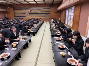 オリエンテーション合宿が始まりました。1団は宿泊研修です。楽しく食事し、真面目に研修を受けています。